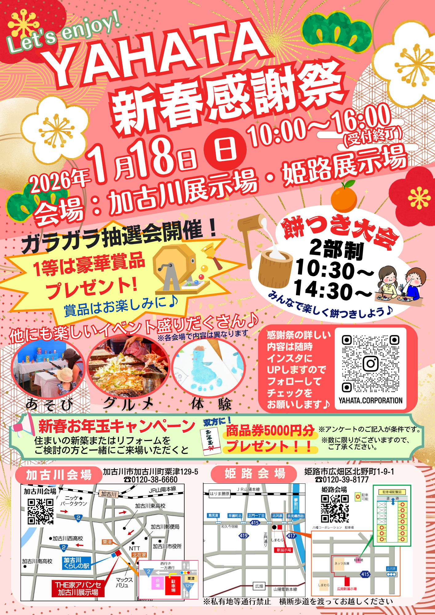 餅つき大会あり、あそびあり、グルメを食べつつイベントを楽しんでいただきたいと思います。